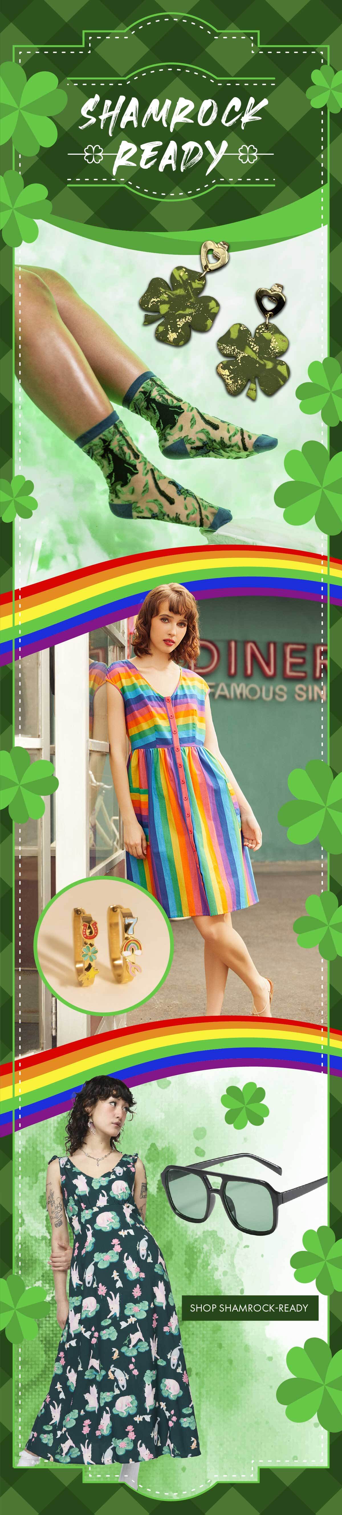 This St. Patrick's Day promotional email showcases festive apparel and vintage fashion with stacked discounts.