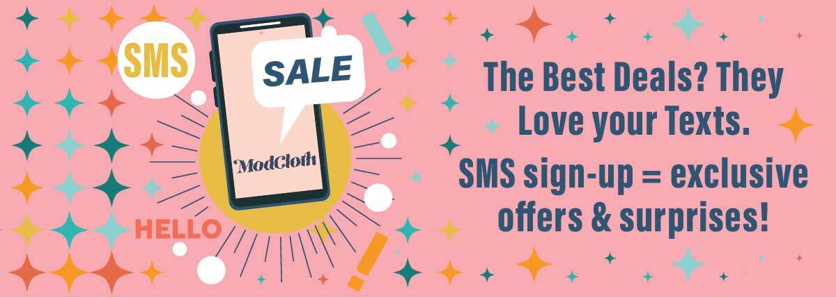 🚨Extra 50% Off ModCloth Sale Styles Valid for a limited time starting 3/5/26 6:00am PST on select ModCloth brand apparel. Pricing auto applied in cart. No coupon required. Excludes Gunne Sax for ModCloth Spring 2026, Orchid Bloom, Chelsea Crew, Dangerfield, Princess Highway, Black Friday, Hot Chocolate Design, Bog Art Studio, V by VYE, Sock Candy, Oh Clementine, Old World Christmas, Rago Shapewear, Retrolicious, Leg Avenue, J Southern Studio, Lady Eleanor & Co., and Witchwood Bags.
