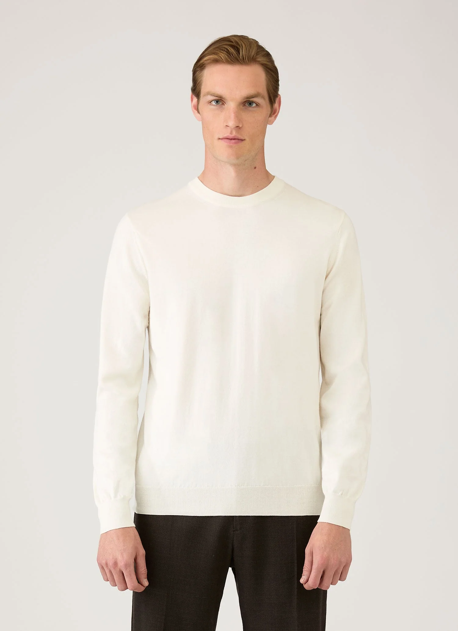 product promotional email showcases Sunspel's lightweight cotton jumper with comprehensive details and styling inspiration. Features detailed product information (Italian-spun Egyptian cotton, garment-dyed, regular fit with fine ribbed trims), a dedicated "How to Style" section with four lifestyle looks, and multiple prominent shop CTAs throughout. Designed to drive product discovery and purchase intent through visual inspiration, detailed product copy, and clear calls-to-action.