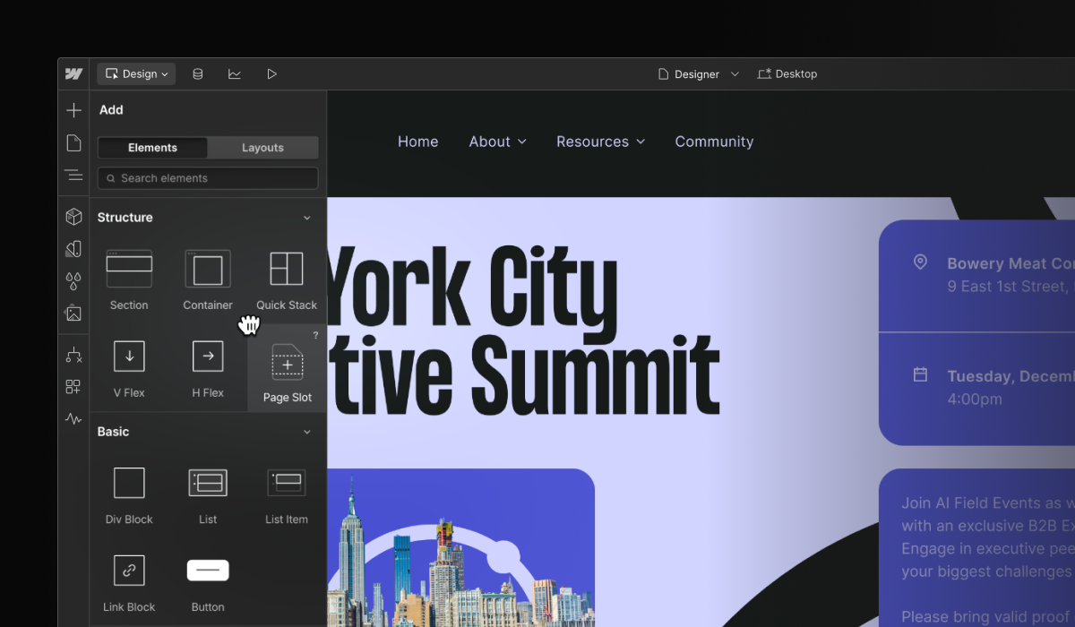 PreviewEditStart building in just a few steps Start building — your way Whether you need to overhaul your main dot com or launch a content-rich microsite, it’s easy to start building with Webflow. Start building If you want to launch even faster Find and customize a template → If you love a blank canvas Start building from scratch → If you want professional help Hire a Certified Webflow Partner → If you’re using Figma Import your design with our app → Go deeper with WebflowLearn everything from the basics of web development to advanced Webflow techniques. Explore Webflow University → Webflow Inc. 398 11th Street, 2nd floor, San Francisco, CA 94103 More templatesHUBLOT WATCHES: Price Drop!💭 Nights like this….Anouk: Moments of Peace and SerenitySale update: extra 40% off sale styles for a limited time