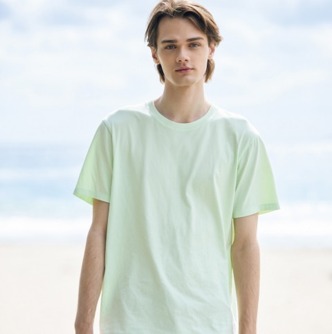 - Features: Link to Women's, Men's, Kids, and Baby sections, plus a bonus section for spring T-shirts and bra tops, and an incentive to download the UNIQLO app.